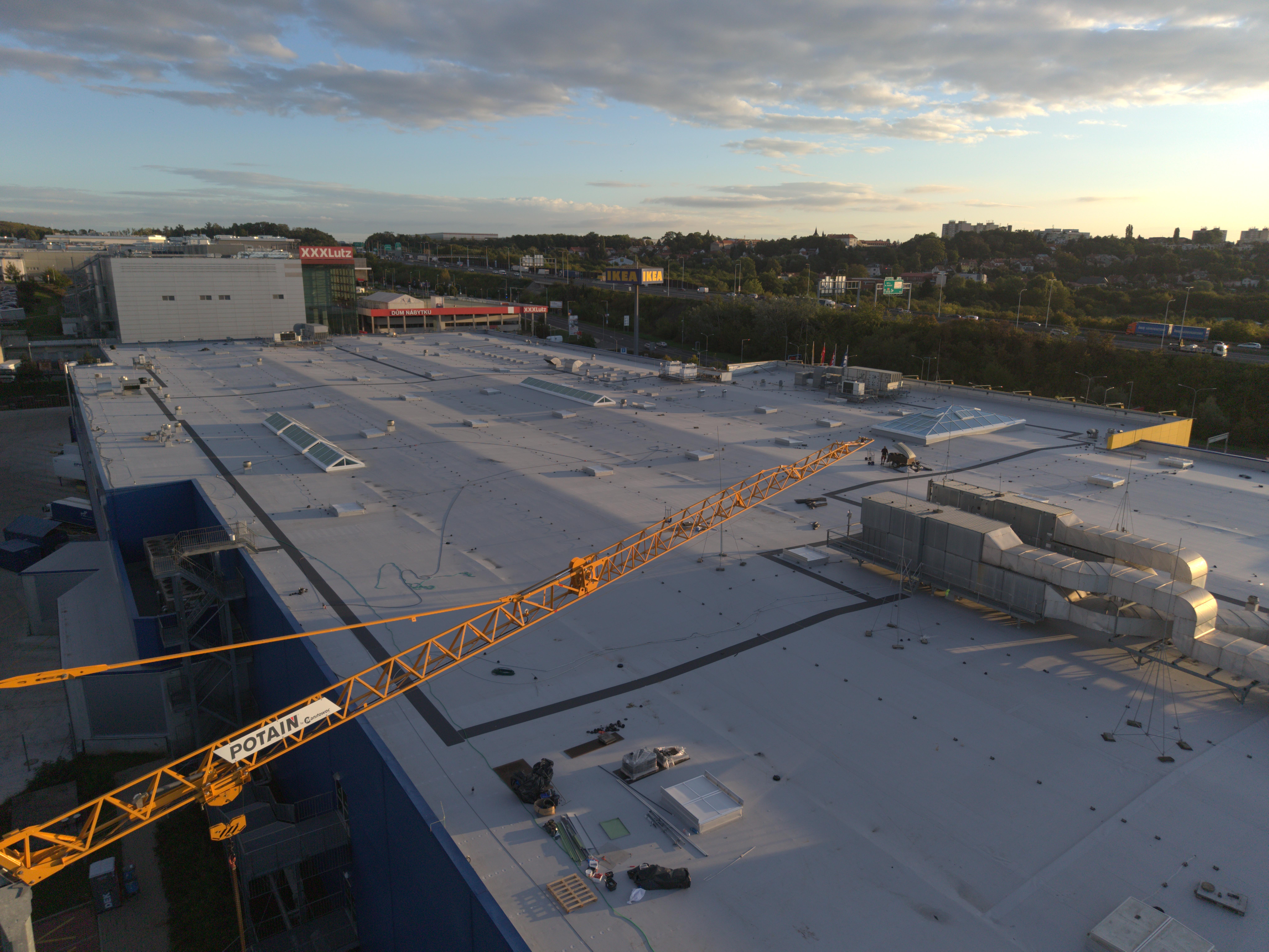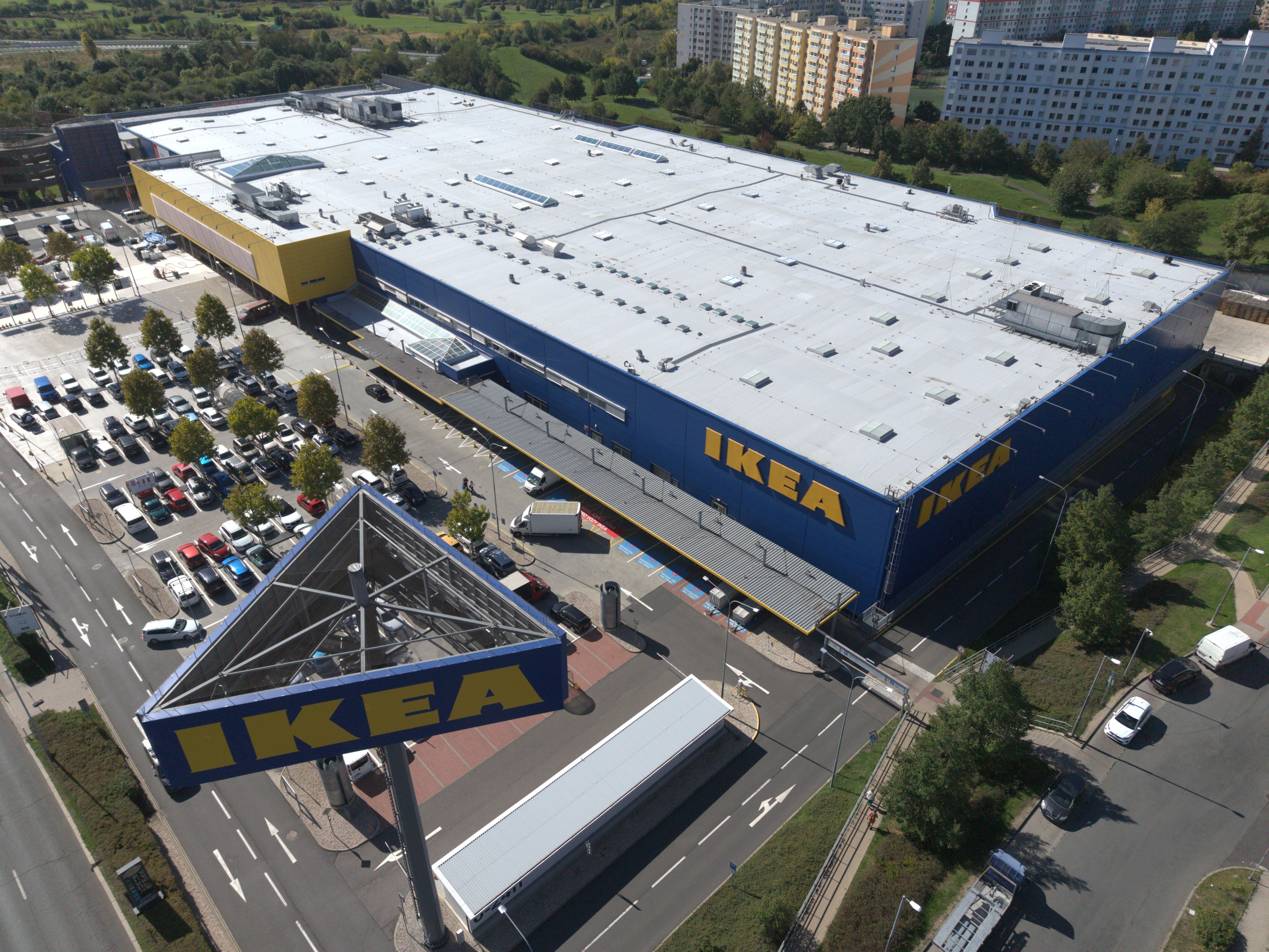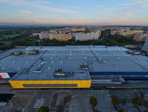Kompletní rekonstrukce střešního pláště na objektu IKEA Praha – Černý Most. Přes 18 000 m2 plochy – rekonstrukce, která probíhala za provozu, a tedy s maximálním ohledem na bezpečí "pod námi". Skladba nové střechy: TPO fólie tl. 1,8 mm, nová tepelná izolace z minerální vaty, parotěsná vrstva z asfaltového samolepicího pásu. Realizace 03—09/2025.